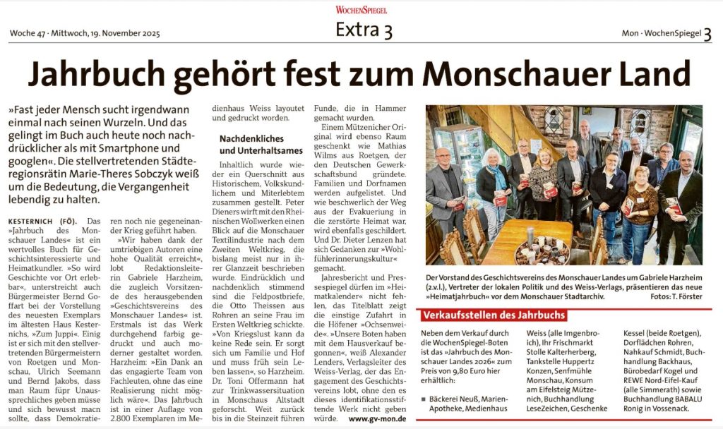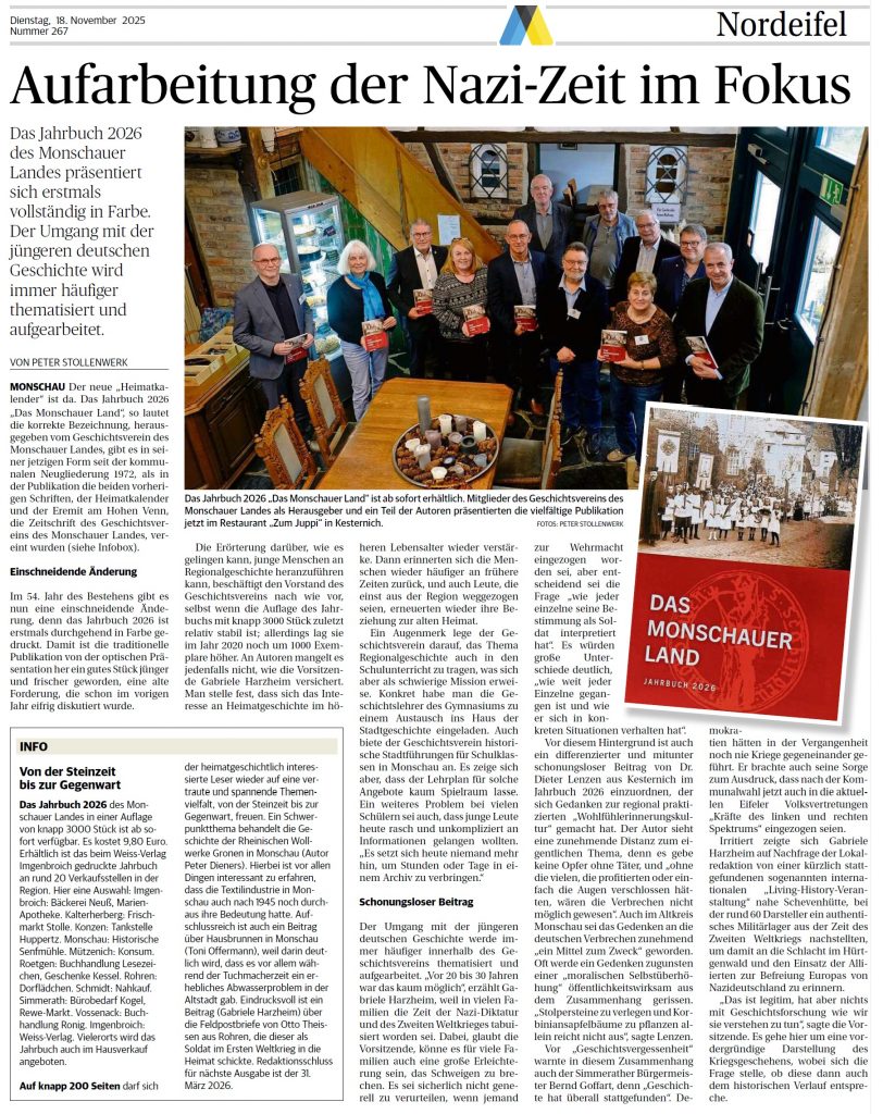 Das Jahrbuch „Das Monschauer Land 2026“ ist erschienen. Nachstehend die Presseartikel zur Vorstellung des Buches: